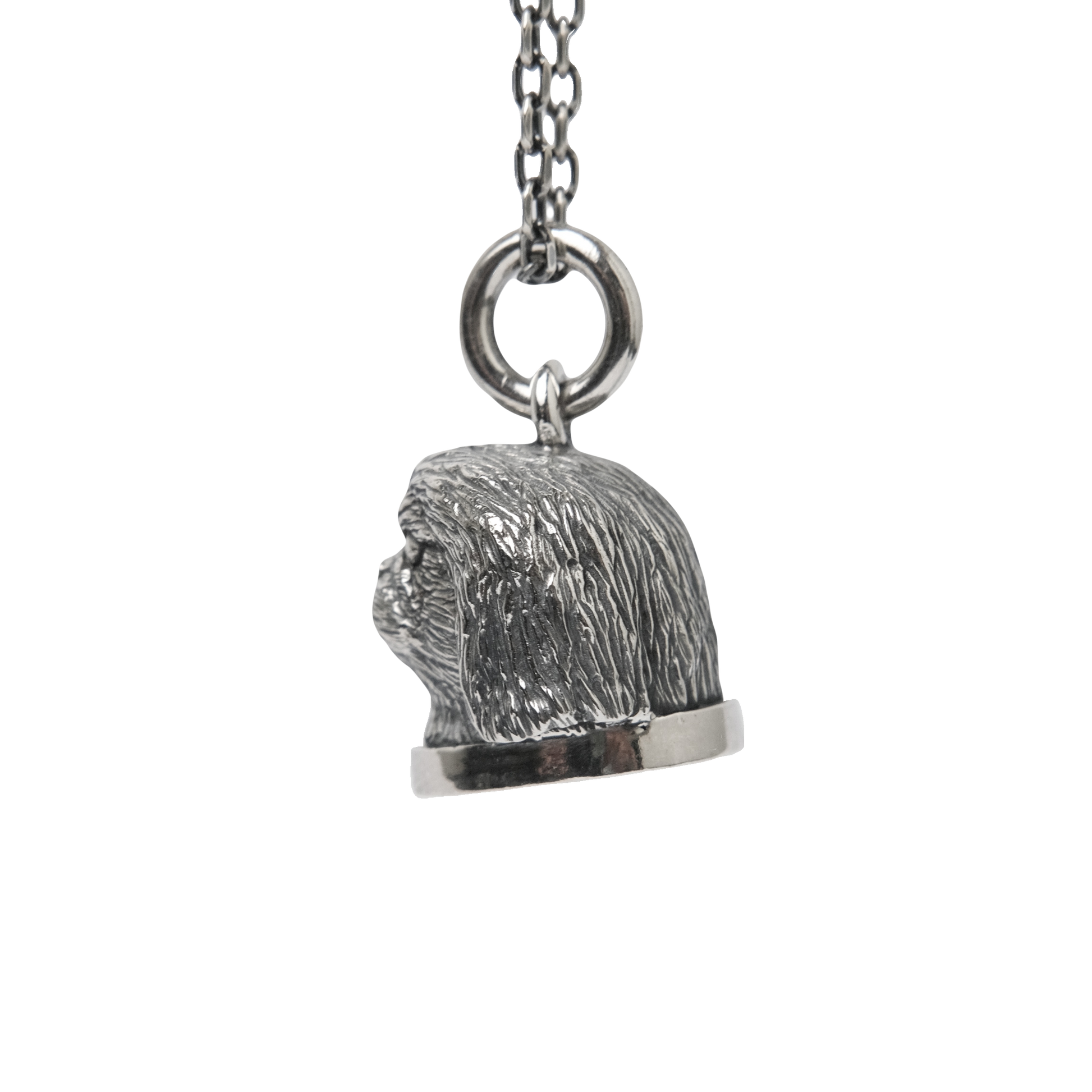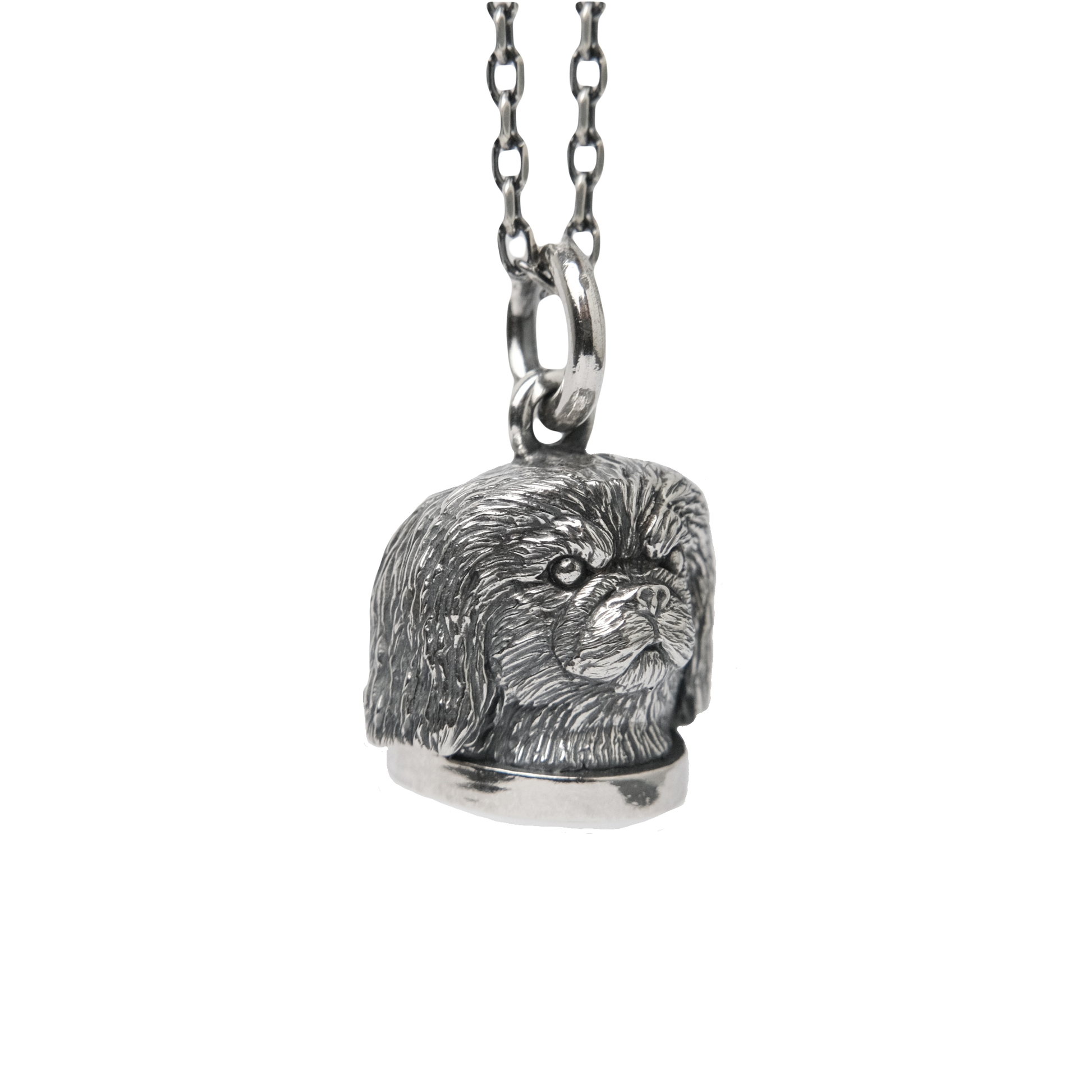 Small pekingese bust pendant, sculpted by hand in wax and cast in sterling silver.